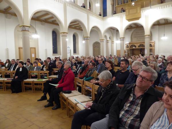 Gottesdienst zum Posaunenchor-Jubiläum in der voll besetzten Kirche mit rund 200 Besuchern.-Dekanin Christiane Glöckner-Lang hielt die Predigt