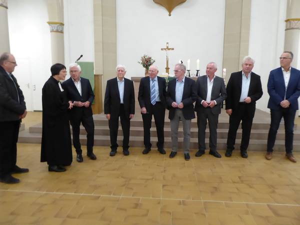 Sinsheim-Hoffenheim. (hh). Nachdem der evangelische Posaunenchor bereits im Frühjahr sein 100-jähriges Bestehen mit einem Jubiläumskonzert gefeiert hatte, konnte Pfarrerin Vera Schleich am Sonntagabend zum Jubiläums-Gottesdienst rund 200 Gäste begrüßen. Sie freute sich darüber, das Dekanin Christiane Glöckner-Lang und der Bezirksposaunenwart Gerald Limberger im Gottesdienst den Einsatz langjähriger Bläserinnen und Bläser bei Ehrungen würdigten; die Teilnahme von Ortsvorsteher Karlheinz Hess sowie einer Abordnung der Abteilungs-Wehr und von Vereinsvertretern wertete sie als Beweis, dass der Posaunenchor als ein lebendiger Teil im Leben der Ortschaft angesehen ist. Pfarrerin Schleich übernahm die Liturgie im Gottesdienst, Dekanin Glöckner-Lang hielt die Predigt, der Posaunenchor unter Leitung seines Dirigenten Rolf Hagmaier und der Kirchenchor unter Leitung von Brigitte Lenz sorgten für die musikalische Gestaltung. Beate Leucht, geb. Sambel, die Ende der 50ger Jahre als erste Frau im Posaunenchor mitwirkte und die später als Prädikantin in verschiedenen Gemeinden Gottesdienste gestaltete, übernahm die Lesung aus 1. Korinther 12, 14 – 26. Paulus beschreibt darin die Bedeutung unterschiedlicher Einrichtungen, die zum Gelingen der Gemeinschaft in Kirchengemeinden notwendig sind. Der Gottesdienst stand ganz unter dem Motto . Dekanin Glöckner-Lang dachte in der Predigt darüber nach, was Mitglieder des Posaunenchors antreibt, über Jahrzehnte aktiv dabei zu bleiben. „Beim Dirigenten Rolf Hagmaier erkennt man, dass es die Freude an der Musik und die Gemeinschaft im Chor und außerdem das Interesse, zeitgemäße Musikformen auszuprobieren, sind; diese Werte konnte er auf den Chor übertragen, und dabei kam die Geselligkeit nie zu kurz!“ betonte sie. Pfarrerin Vera Schleich zitierte wenige Meilensteine aus der 100-jährigen Geschichte des Chores. Die aus Hoffenheim stammende Ärztin Katharina Engelhardt – bei vielen Hoffenheimern nur „die Amerika-Tante genannt – arbeitete in den USA erfolgreich und stiftete unterschiedliche Instrumente zur Gründung eines Posaunenchors in ihrer Heimatgemeinde. Mehrfach wurde die Geschichte des Chores durch Kriegsereignisse oder den Wegzug des Chorleiters unterbrochen. In den 50er Jahren versuchten einige Mitglieder des Jugendkreises unter Pfarrer Otto Riehm einen Neustart. Theo Manser wurde Chorleiter und kam jede Woche mit dem Motorrad von Helmhof zu den Proben nach Hoffenheim. Der heute 80-jährige Rolf Hagmaier war 12 Jahre im Posaunenchor seiner Heimatgemeinde Waldangelloch aktiv; beim Traugespräch gelang es dem damaligen Gemeindepfarrer Hans Mohr, ihn zur Übernahme der Leitung des Posaunenchors zu gewinnen. Nun ist Rolf Hagmaier bereits seit 55 Jahren Dirigent des Chores. In der Vergangenheit bildete er immer wieder junge Burschen und Frauen, aber auch ältere Interessierte an verschiedenen Instrumenten aus, intergierte sie in die Chorgemeinschaft und sorgte so dafür, dass bis in die Gegenwart ein geschätzter und geachteter Klangkörper entstand. Auffällig ist, dass in den Namenslisten der Chormitglieder oft dieselben Familiennamen auftauchen. So sind es häufig Mitglieder der Familien Sambel und aktuell sind sechs Mitglieder der Familie Hartmann im Chor aktiv. Dekanin Glöckner-Lang und BezirksPosaunenwart Gerald Limberger konnten sechs langjährige aktive Bläser zusammen mit Dirigent Rolf Hagmaier mit Urkunden und dem Goldenen Kreuz der Badischen Landeskirche für außerordentliche Verdienste in der Kirchengemeinde auszeichnen, die zusammen 359 Einsatzjahre aufweisen können: Es sind Lothar Leucht (65 Jahre), Hermann Sambel (63), Manfred Sambel (63), Wilhelm Straub (60), Dieter Heß (58) und Matthias Mörk (50). Außerdem erhielten zehn Bläserinnen und Bläser für 47 Jahre bis zu 10 Jahren aktiven Einsatz Urkunden und das Silberne Kreuz der Landeskirche. Sechs Bläserinnen und Bläser sind zwischen 9 und 2 Jahren aktiv dabei. OV Karlheinz Hess bestätigte in seinem Grußwort die Bedeutung des Posaunenchors für das kulturelle Leben in der Ortschaft. „ Es gab nie ein Nein, wenn der Chor für kirchliche Veranstaltungen oder Termine der Ortschaft angefordert wurde; auch bei Festen oder Prozessionen der katholischen Kirche wart ihr im Einsatz und habt den ökumenischen Gedanken umgesetzt!“ betonte er und dankte für die Bereitschaft zur Mithilfe zugunsten der Dorfgemeinschaft. Pfarrerin Schleich und Dekanin Glöckner-Lang werteten die Einsätze des Posaunenchors als „unverzichtbare Bereicherung der Gottes-dienste und wesentliche Bestandteile der Verkündigung; zugleich macht die Musik des Posaunenchores Freude, weil sie in die Seele geht“. Die Kollekte beim Gottesdienst wird je zur Hälfte der Bläserarbeit im Kirchenbezirk Kraichgau und den kirchenmusikalischen Angeboten in der Kirchengemeinde zur Verfügung gestellt. Im Anschluss an den Gottesdienst waren die Gäste zum Sektempfang eingeladen; dabei wurden viele Bekanntschaften erneuert und Erfahrungen ausgetauscht.